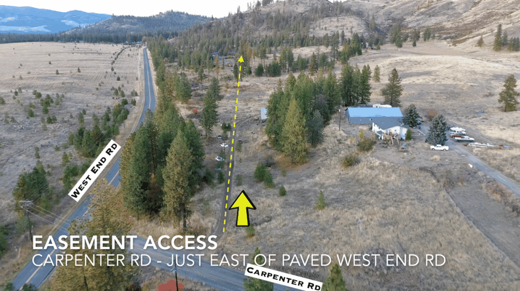 20 acres close to a main road overlooking the pristine eastern Washington countryside. Power lines serving the neighboring parcels are about 700 feet south of the property. Access is from the south via an easement from Carpenter Road. The terrain slopes from north to south, providing unimpeded views of Lilienthal Mountain and the enterprise valley.