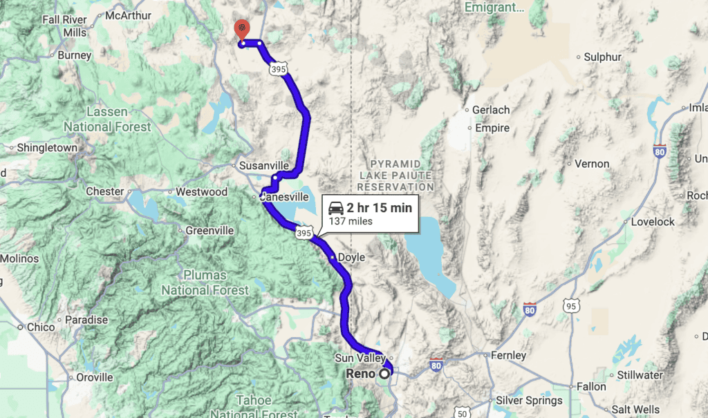 Nearby Attractions: Reno, NV – 2 hr and 20 min
