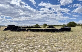 A unique feature of this parcel is an arroyo which provides seasonal water flow through the parcel. The terrain is relatively level providing easy building. With no HOA, you have the freedom to design your land your way! The prior owner created an enclosed area with fencing and tires to house their travel trailer for the summers.