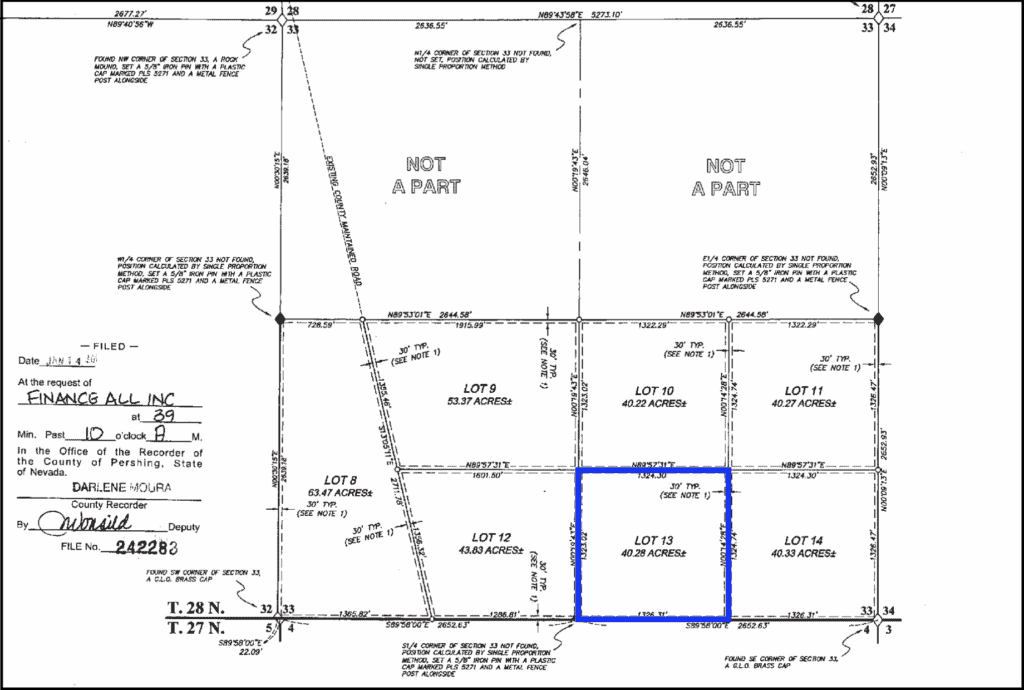 40.28 acres in northern Nevada’s Buena Vista Valley with residential building rights. The property has been surveyed and has an access easement to a county maintained road. Adjacent to the property are 640 acres of public recreational land maintained by the BLM and has easement access to thousands more.